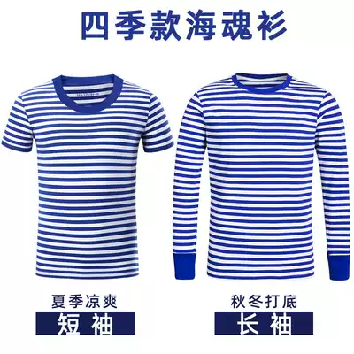 Sea soul shirt suit men's summer striped women's short sleeves sea physical training suit half sleeve retro loose military T-shirt