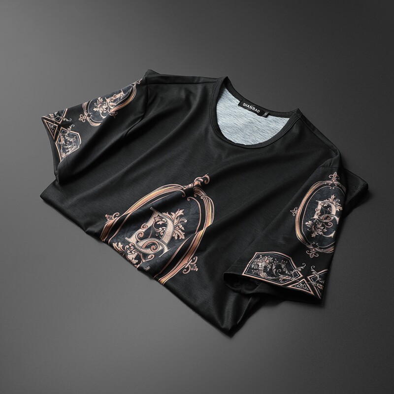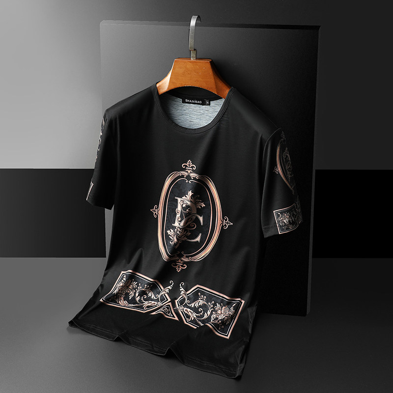 Men's short-sleeved T-shirt mercerized cotton ice silk pure cotton 2021 summer new ins trend casual slim fit high-end men's clothing