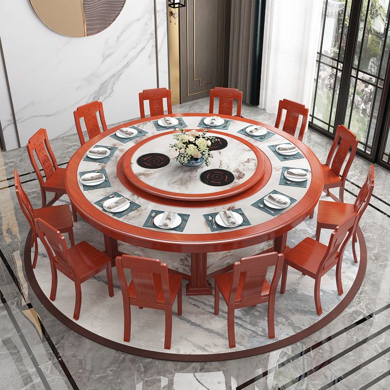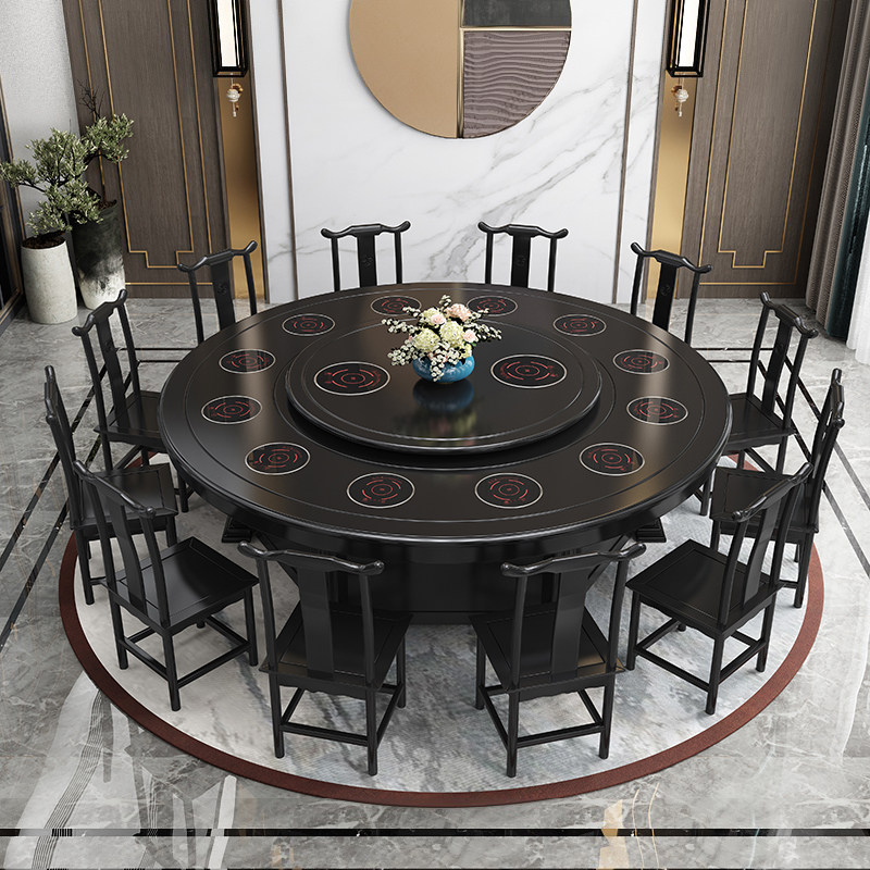 New Chinese hotel solid wood electric dining table and chair combination hotel box dining room hot pot table 15 people 20 people large round table