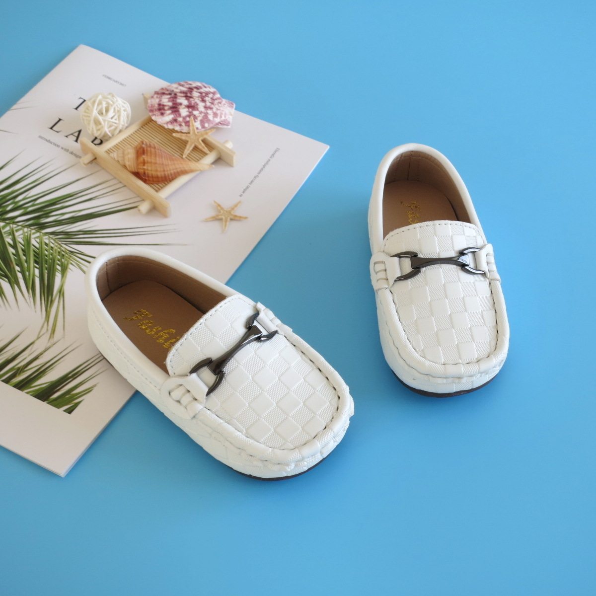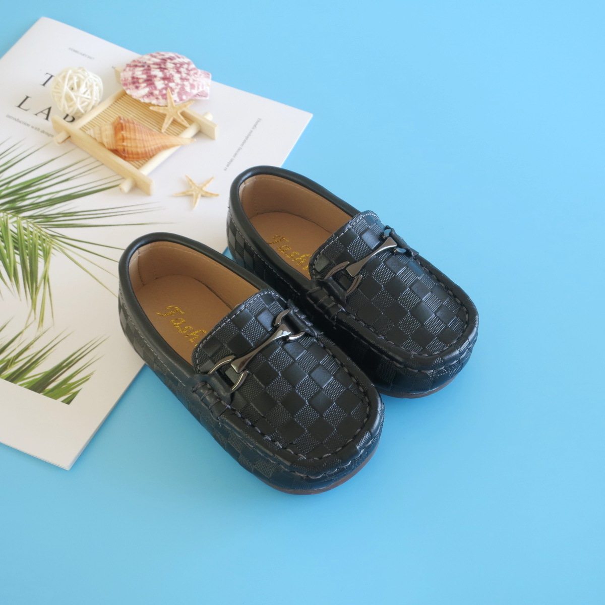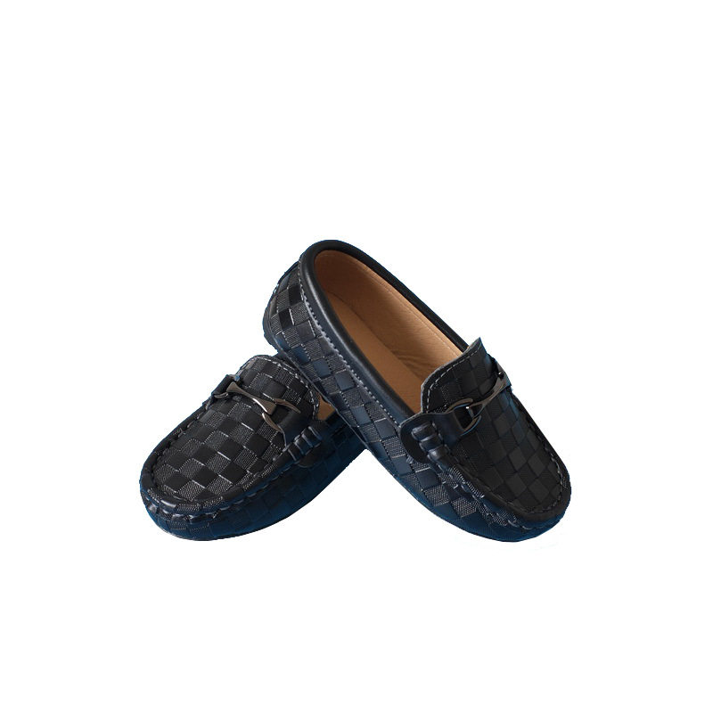 Children's leather shoes spring boy bean shoes black and gas casual baby single shoes round head soft sole English wind performance