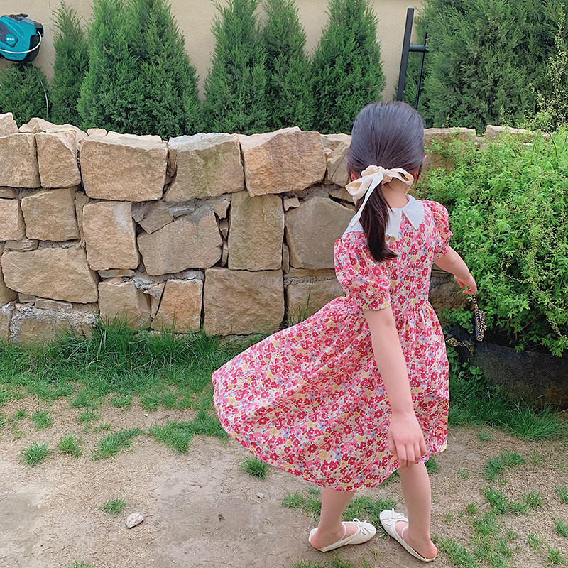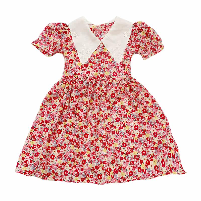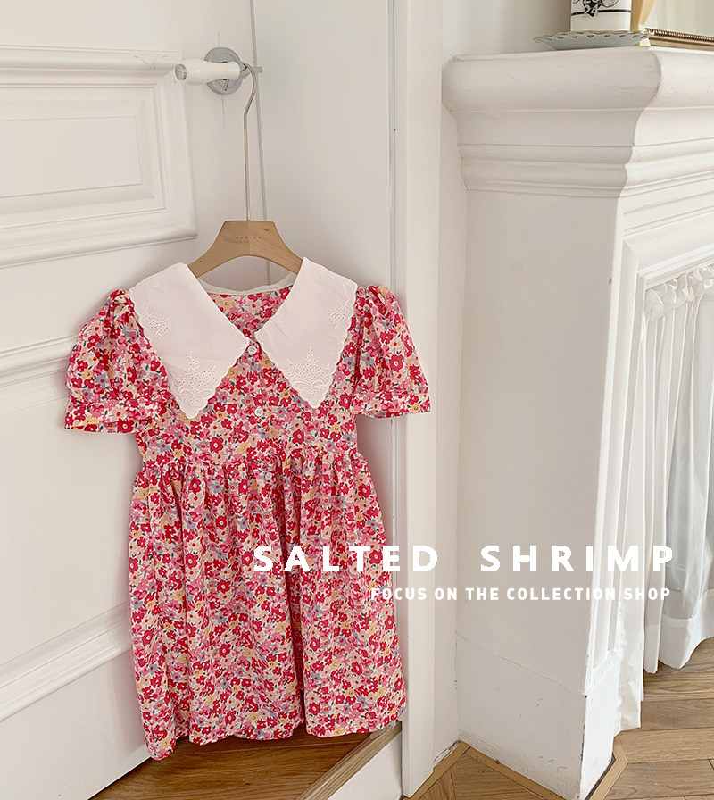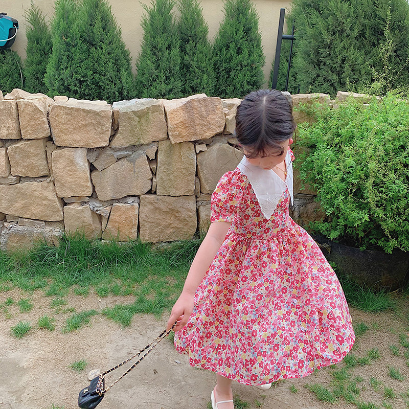 Salted egg small shrimp girl French embroidery square neck dress toddler summer dress children Mori chiffon floral skirt