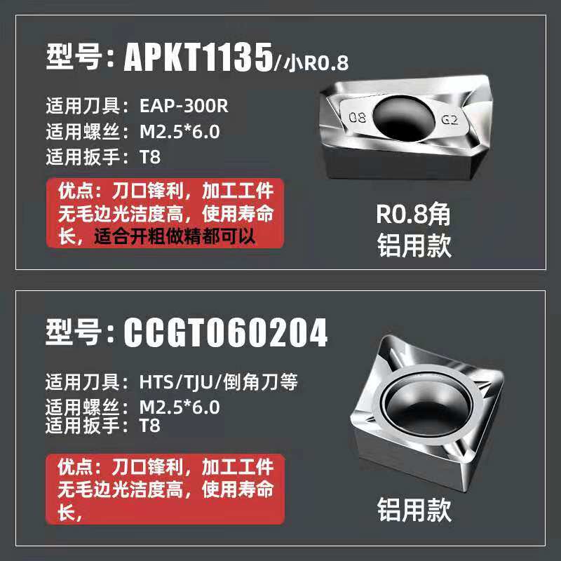 CNC Milling Blade APKT1135 1604 RPMT1003 SEHT1204 R5 R6 Aluminum Blade Grain