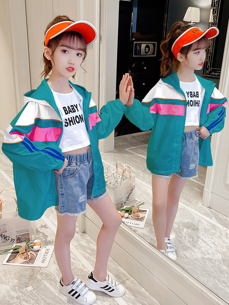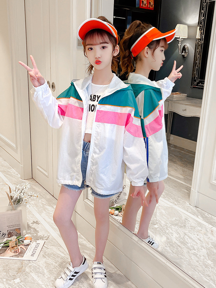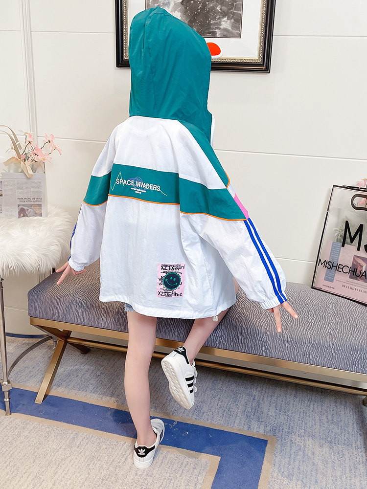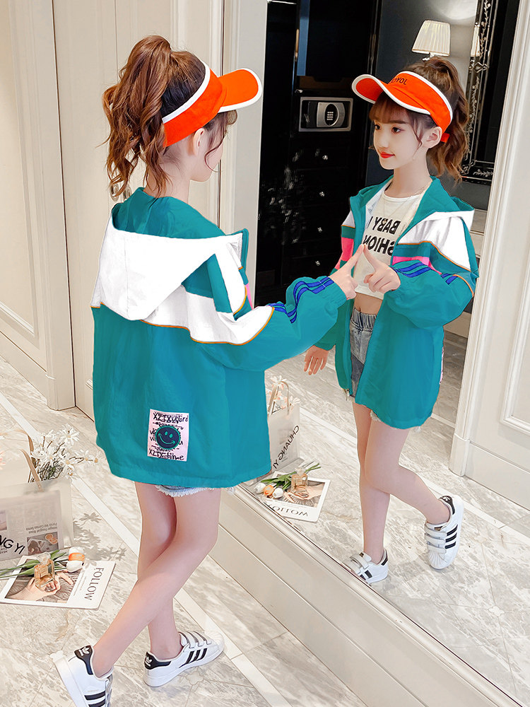 Girls' sun protection clothing summer thin section children's summer hooded jacket top girl foreign style skin clothing UV protection