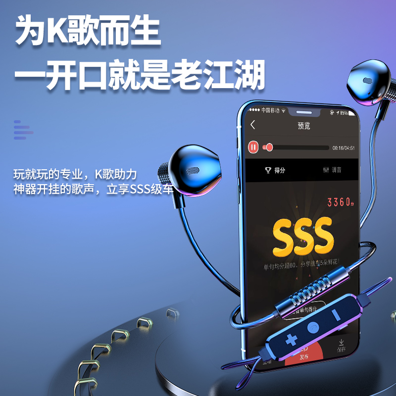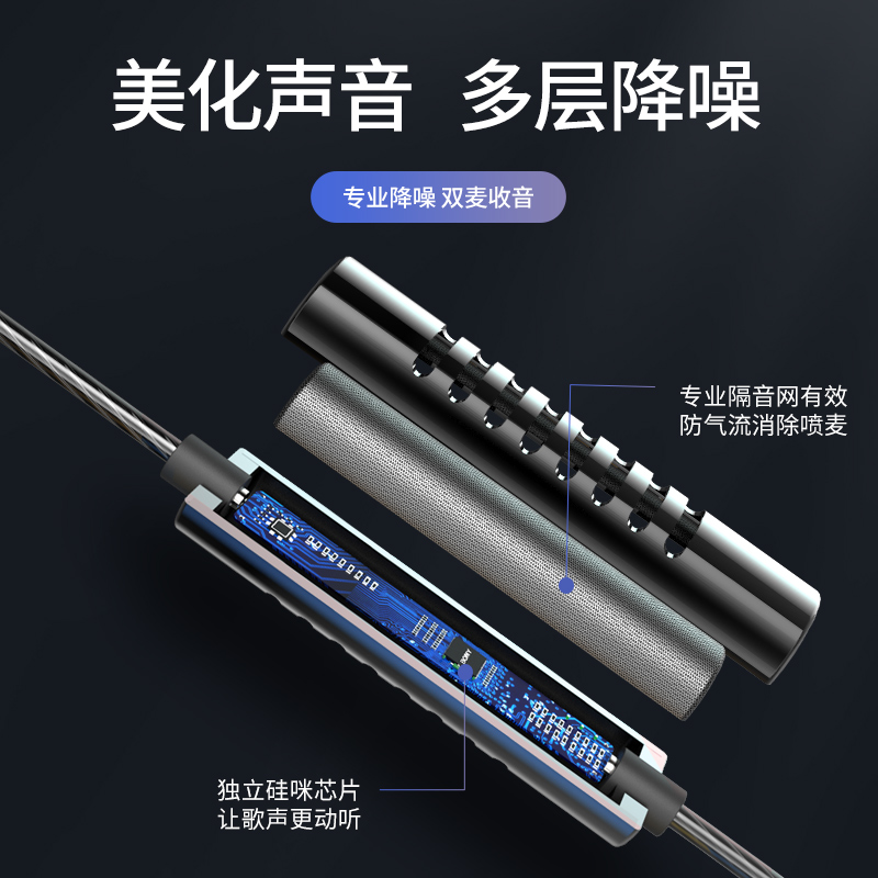 Platinum Mai K6 dual microphone sound card headset Wired in-ear K song headset monitor record song recording National singing live special mobile phone Desktop computer comes with voice changer with microphone typec semi