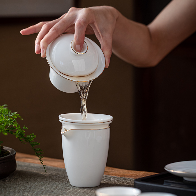 Sheep fat jade kung fu tea set home living room Chinese style tea office meeting guests Dehua white porcelain cover bowl teacup