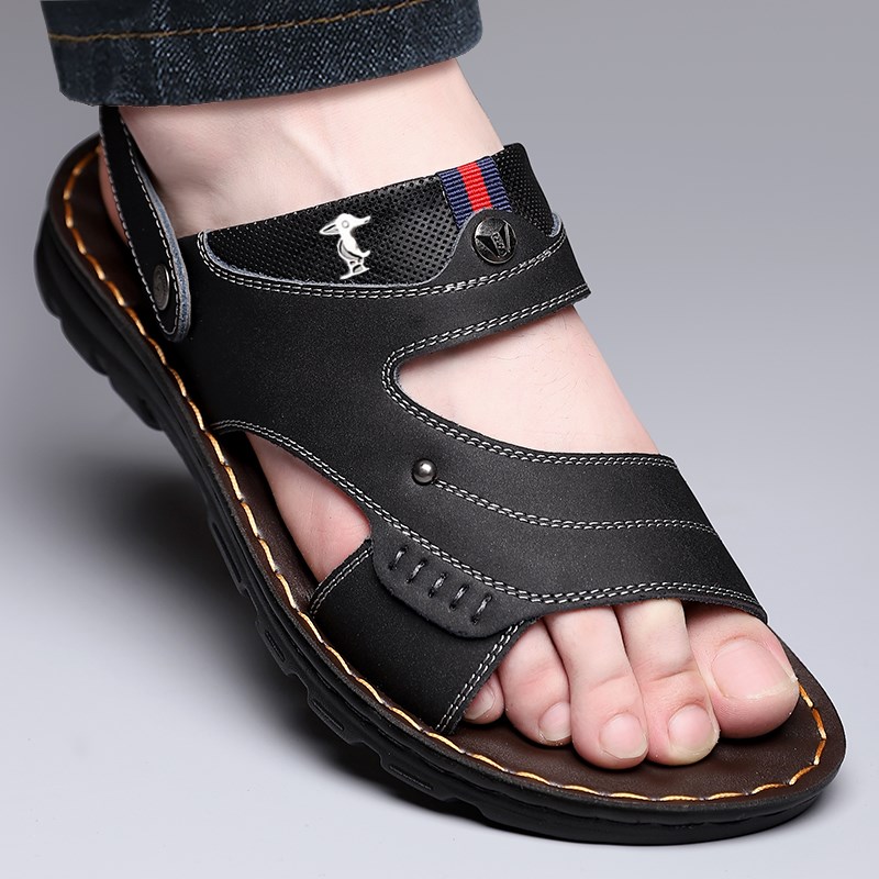 Pecking Wood Buffalo Leather Men Sandals Summer Men leather sandals Breathable Cool Tow Dual-use Casual Beach Shoes Dad Shoes