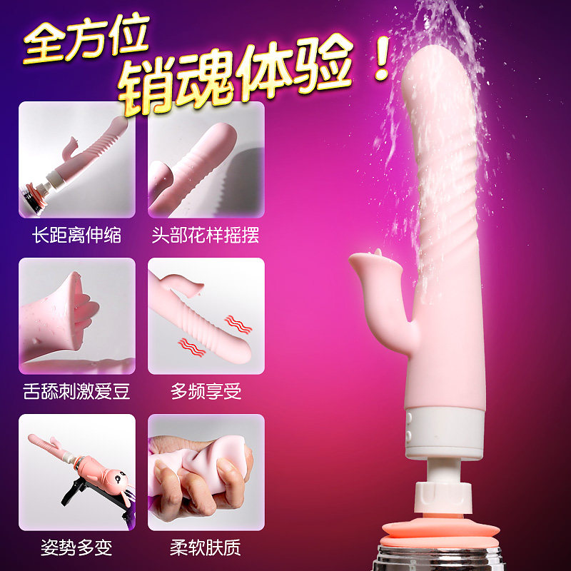 Double-headed gun machine pink (telescopic swing + tongue lick + imitation dildo) gift bag + orgasm liquid