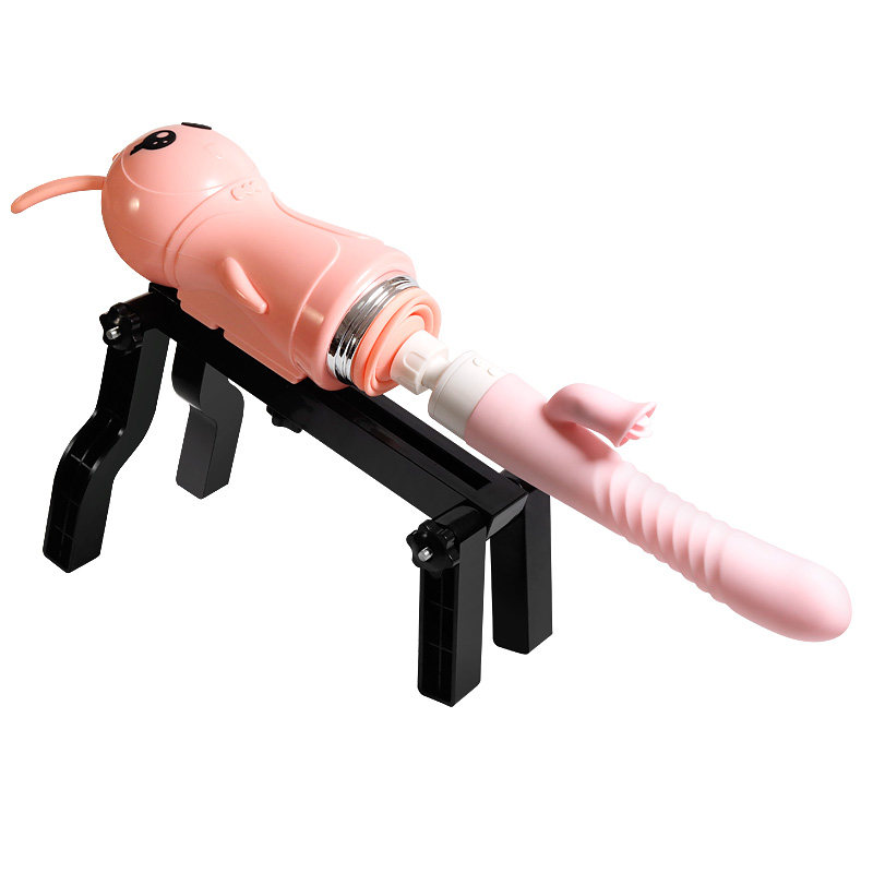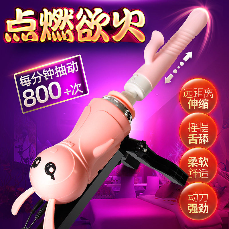 Double-headed gun machine pink (telescopic swing + tongue lick + imitation dildo) gift bag + AV stick