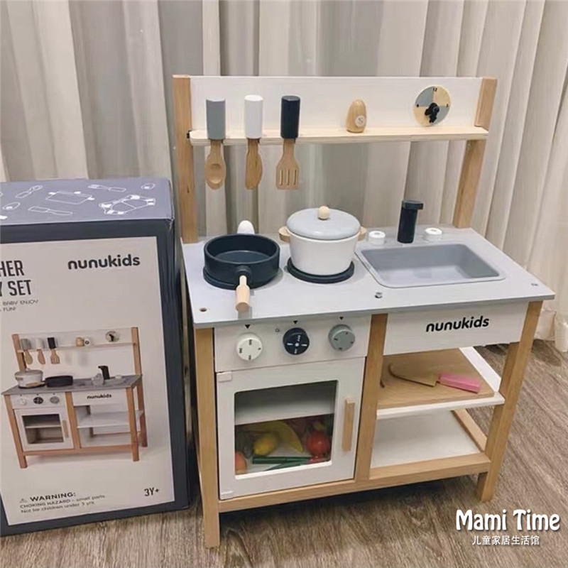 Korea INS wooden children's house kitchen toy set girl cooking cooking simulation kitchenware birthday gift