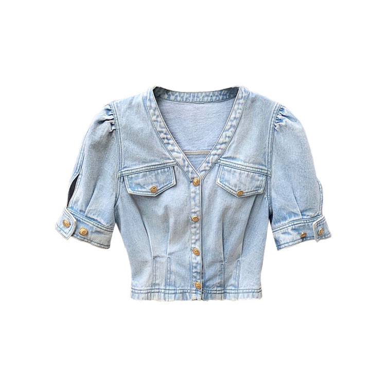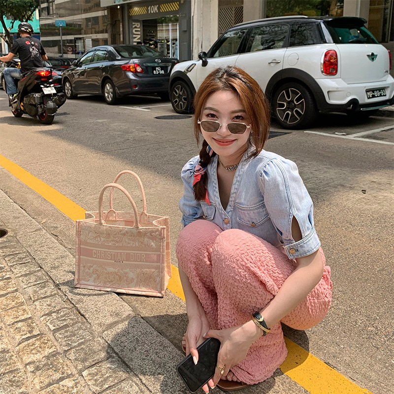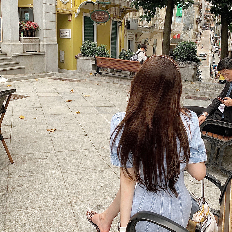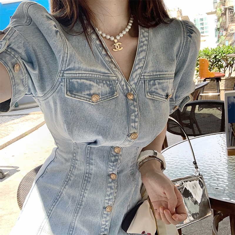 DoggyQin's unusual denim 2021 new denim short top is thin and waist A-line dress