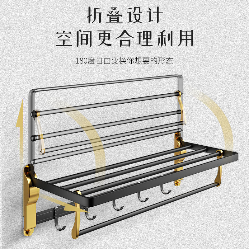 Collection shopping cart] Send a value of 30 yuan dish and washbasin hook free punch/punch can be used with complete accessories Black gold bath towel rack Black gold towel hanging rod Black gold clothes hook