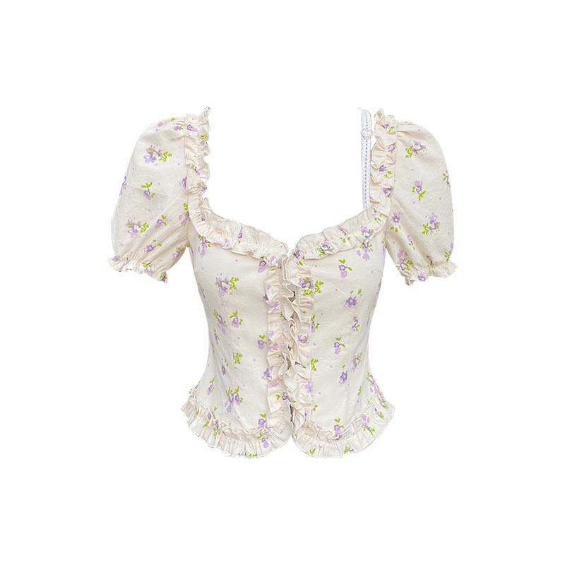 DoggyQin's rum summer in memory 2021 new cotton floral top small dress summer