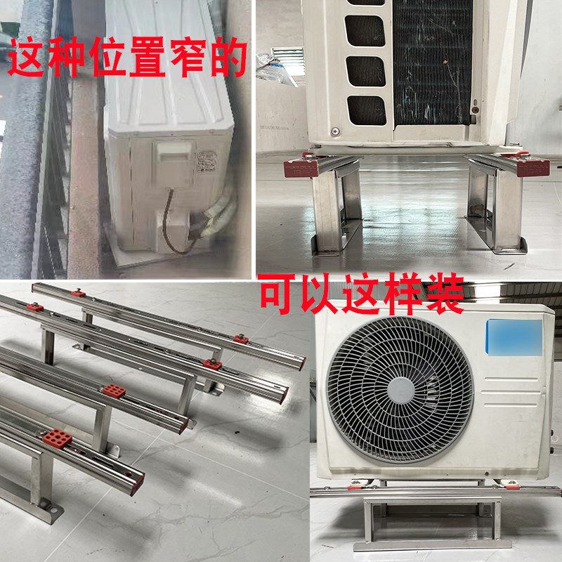 Stainless steel air conditioning sitting ground rack outdoor machine ground shelf with horizontal bar shock absorbing shock-proof cushion high thickened 3 pien 2P universal