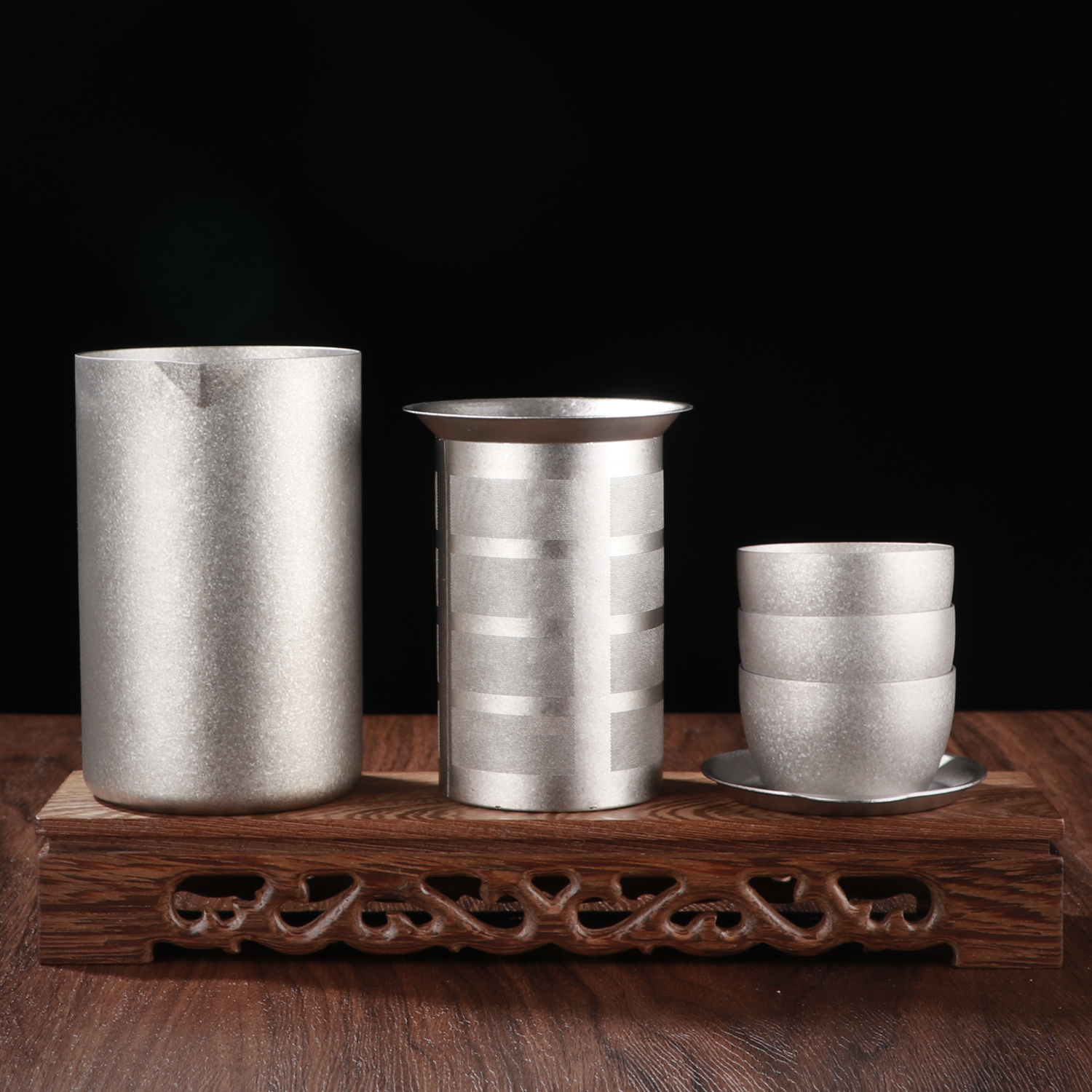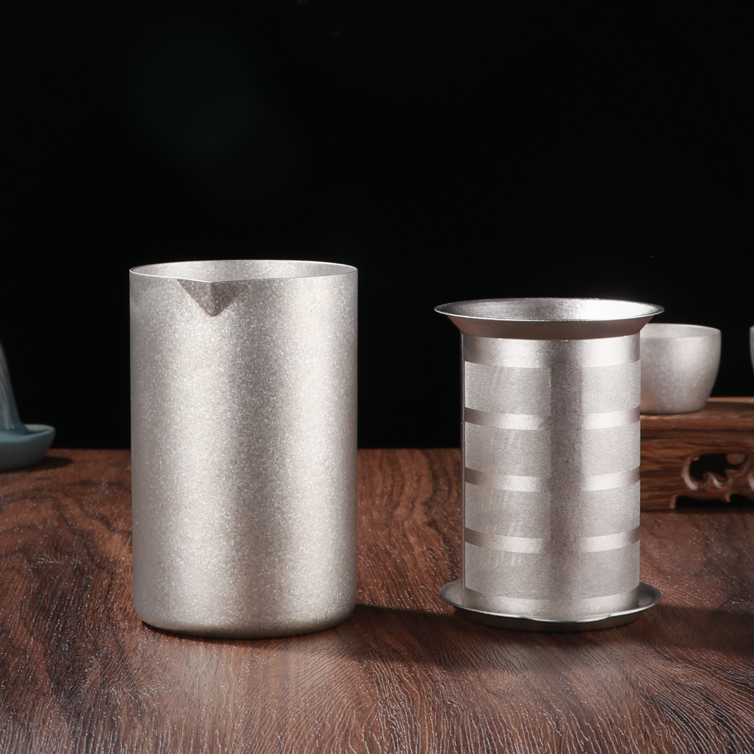 Pure titanium double-layer tea maker Portable outdoor travel tea set Ultra-light anti-scalding single titanium alloy quick cup