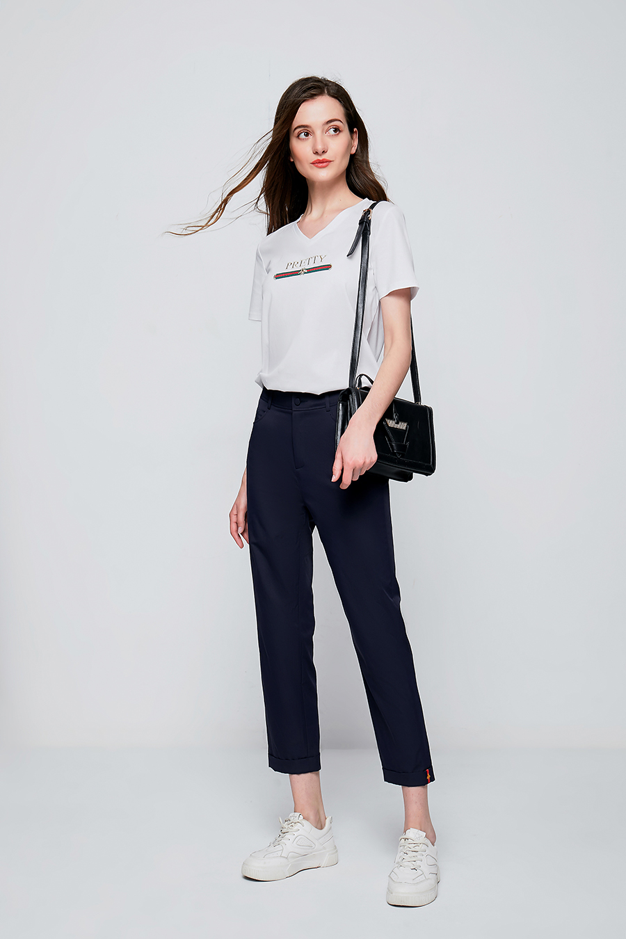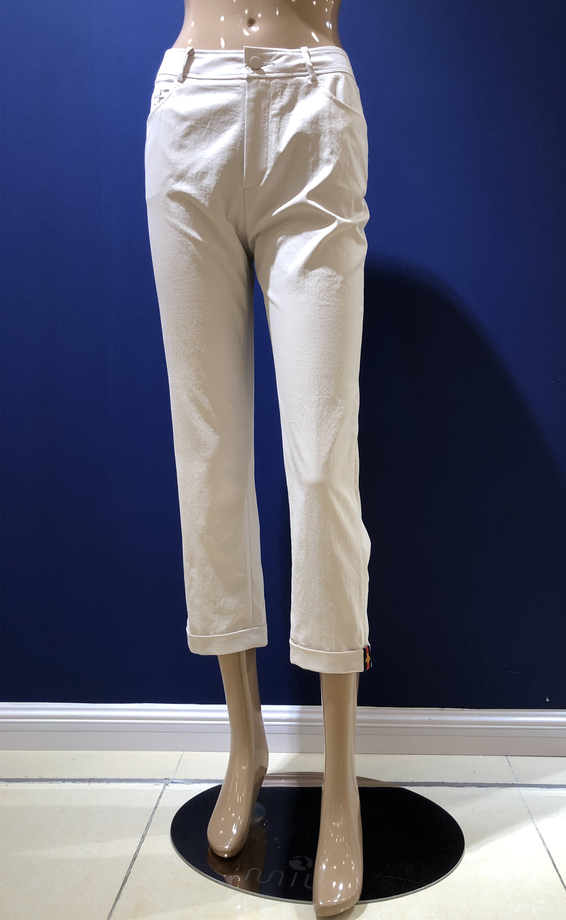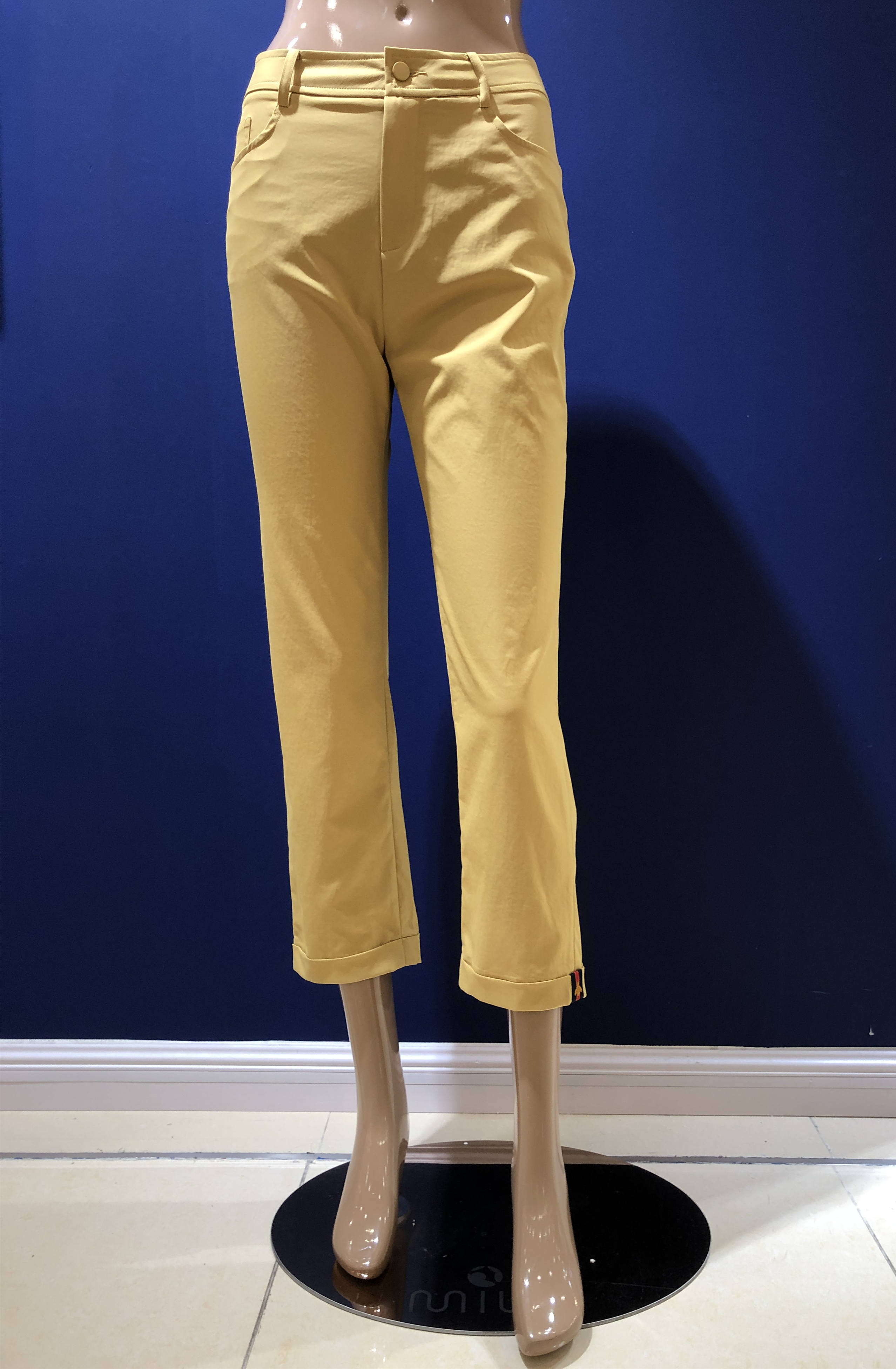 123A002 Tea Women's Pants Small Straight Pants Women's Eight Points Elastic Waist Comfortable Taiwan Tea Counter 2021 Summer Dress