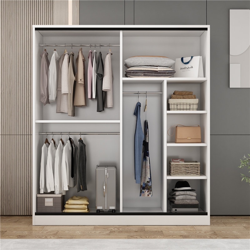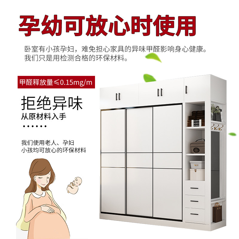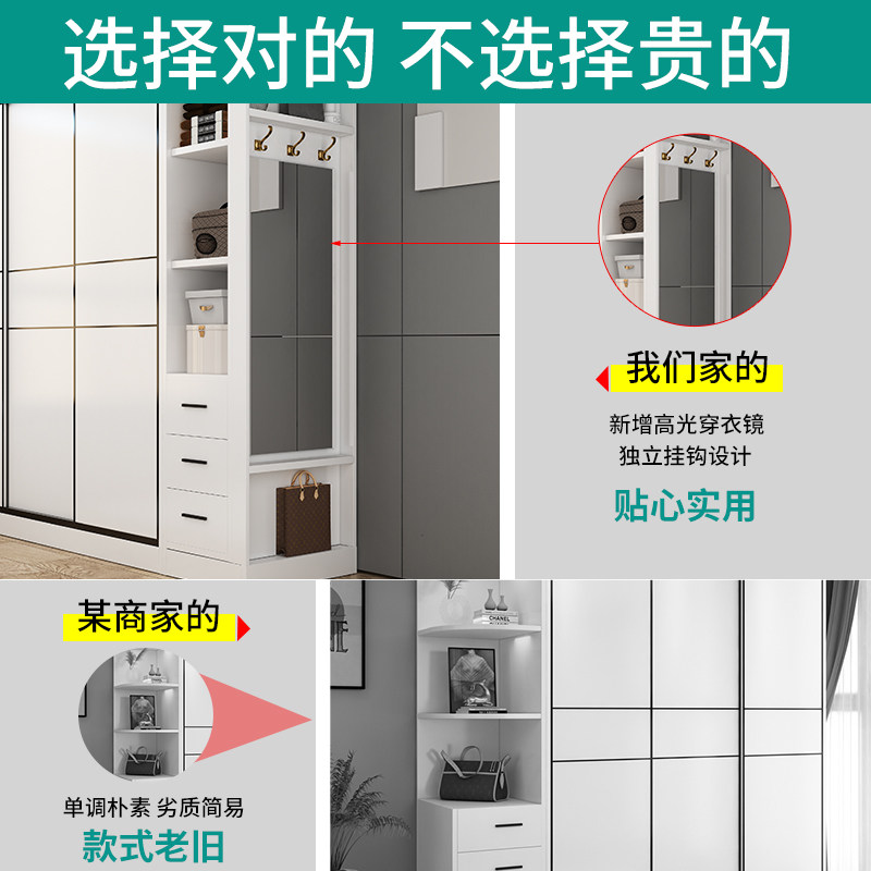 Push and pull doorwardrobe household bedroom with mirror simple modern rental room for solid wood simple small household type collection cabinet