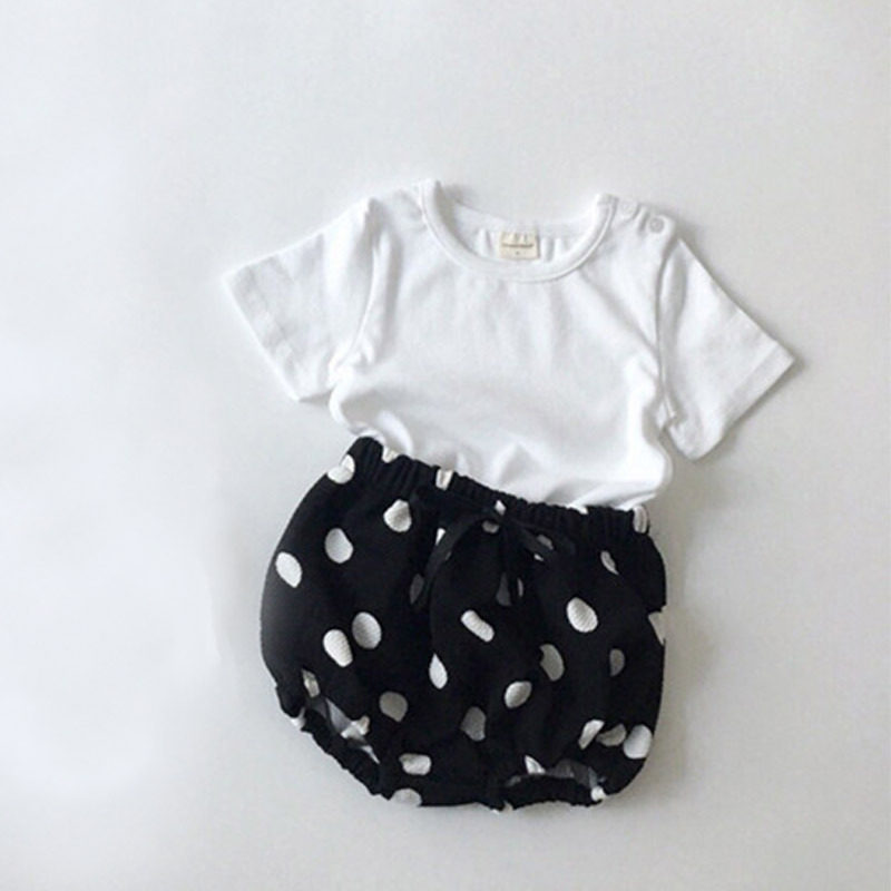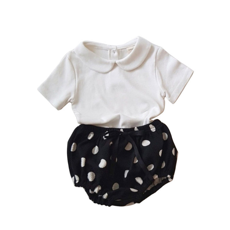 ins Korean version of summer baby round neck doll collar T-shirt thin section newborn big PP pants male and female baby bloomers