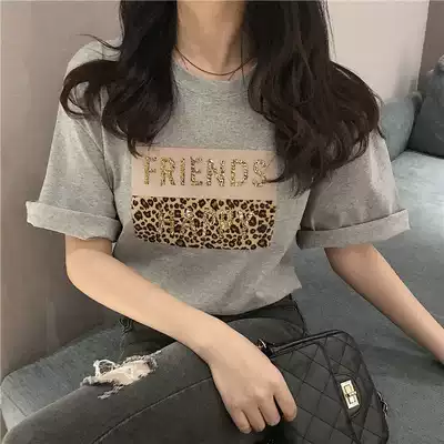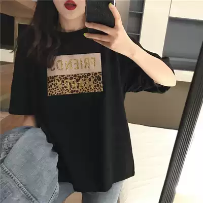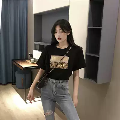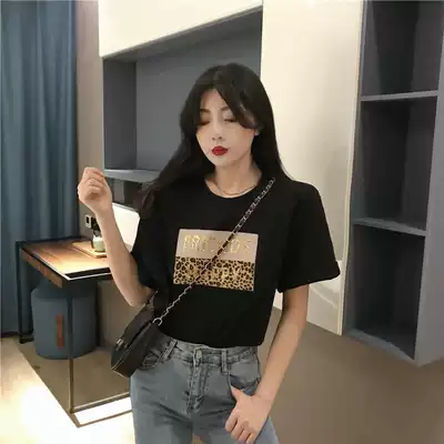 Tide brand 2021 New Korean chic round neck short sleeve women fashion vintage gilded letter loose Joker T-shirt ins