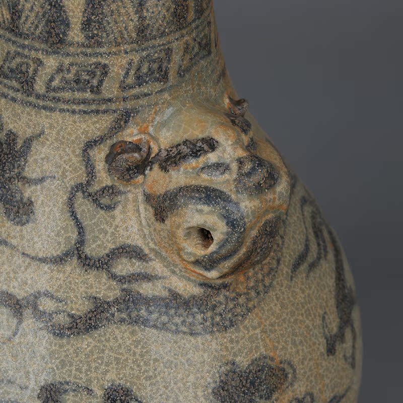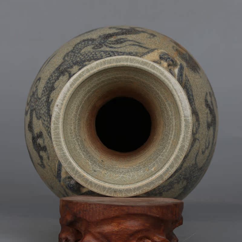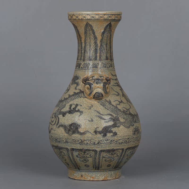Imitation Yuan Dynasty unearthed Qingflower Cloud Dragon thread Weathered Double Beast First Ear Jade Pot Spring Bottle Imitation Antique Porcelain Folk Collection Pendulum