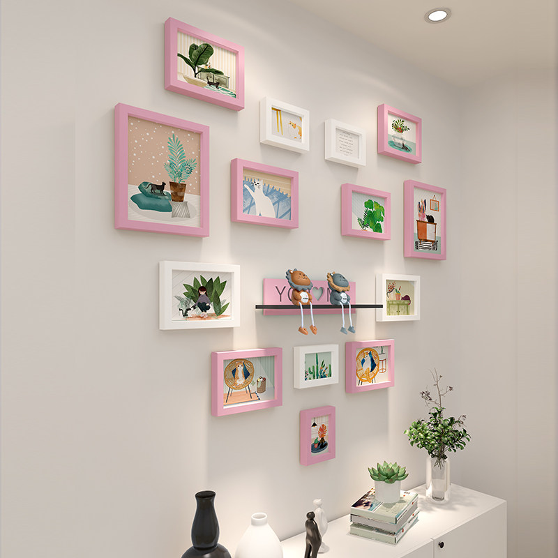 Heart-shaped living room photo frame hanging wall creative sofa background wall photo photo frame wall book free punching combination room picture frame