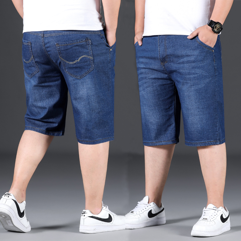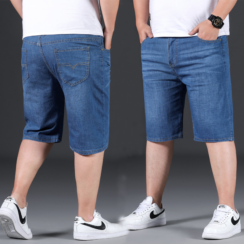 Summer thin section denim shorts men's loose straight tube plus fertilizer plus size casual pants fat guy five-point breeches trendy fat