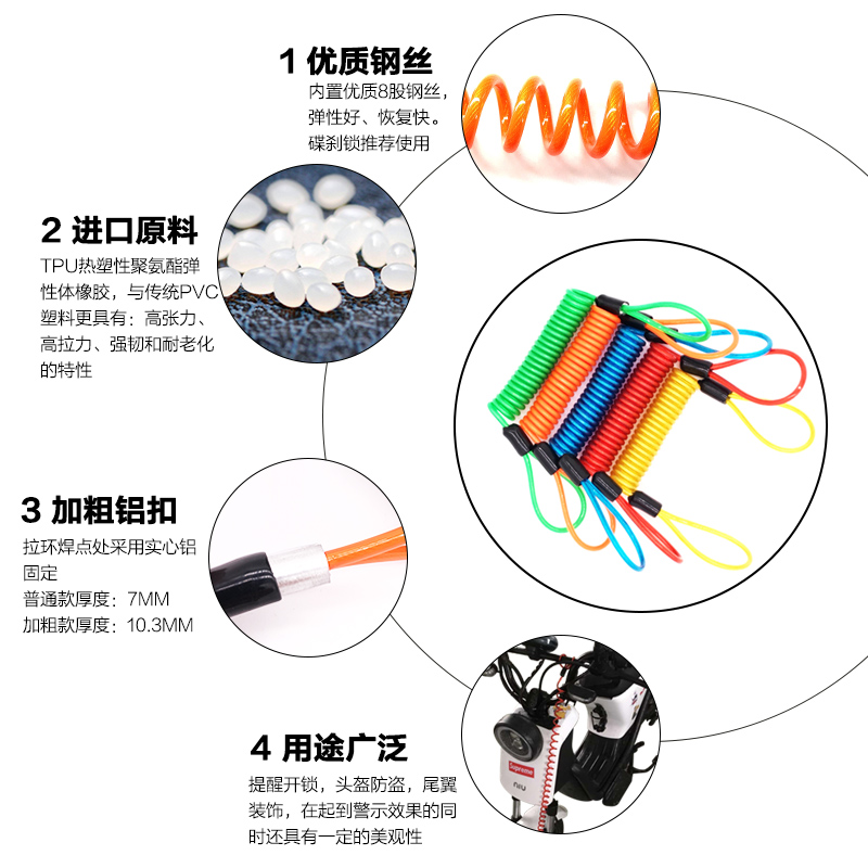 Locomotive disc brake reminder rope warning rope thick and long electric vehicle lock anti-theft wire rope accessories safety helmet