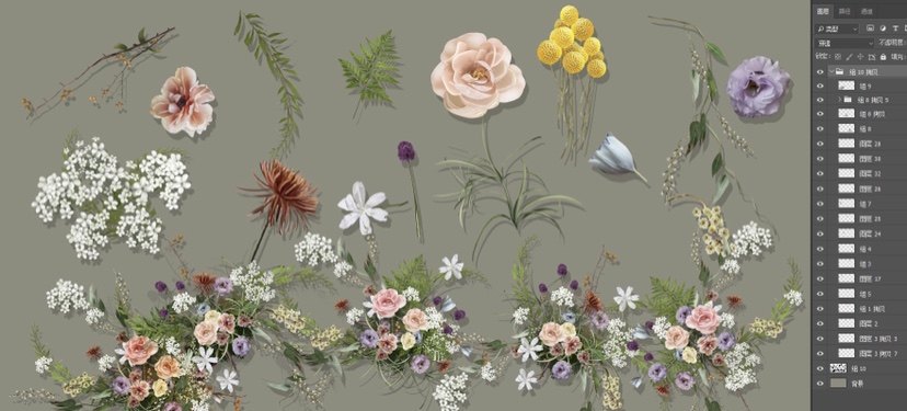 Wedding renderings small fresh floral avocado color yellow pink green white purple psd layered
