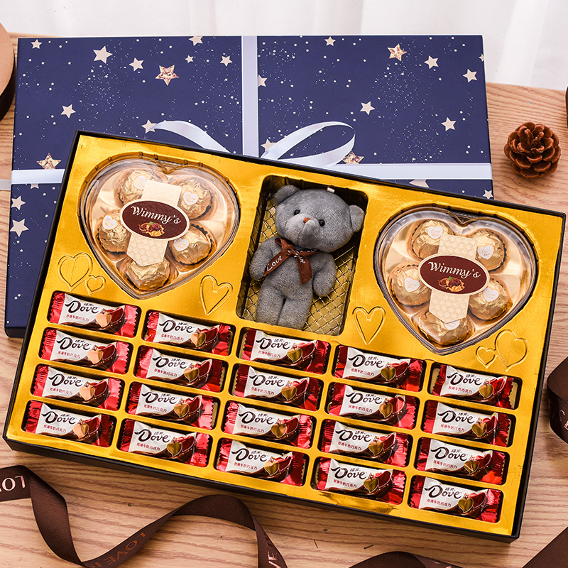 Style one-heart chocolate gift box (bear style) style two heart heart-to-heart chocolate gift box (a deer has your zircon necklace) style two heart-to-heart chocolate gift box (a deer has your Zirconium