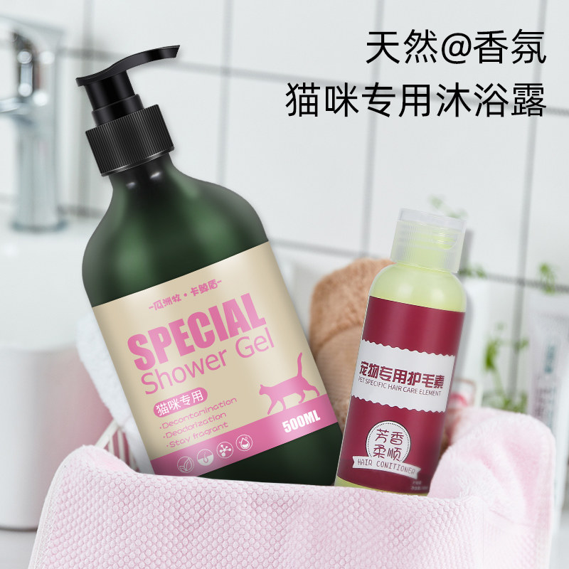 Cat shower gel special bath liquid long and short hair blue cat kitten shampoo pet bath cat shower gel supplies