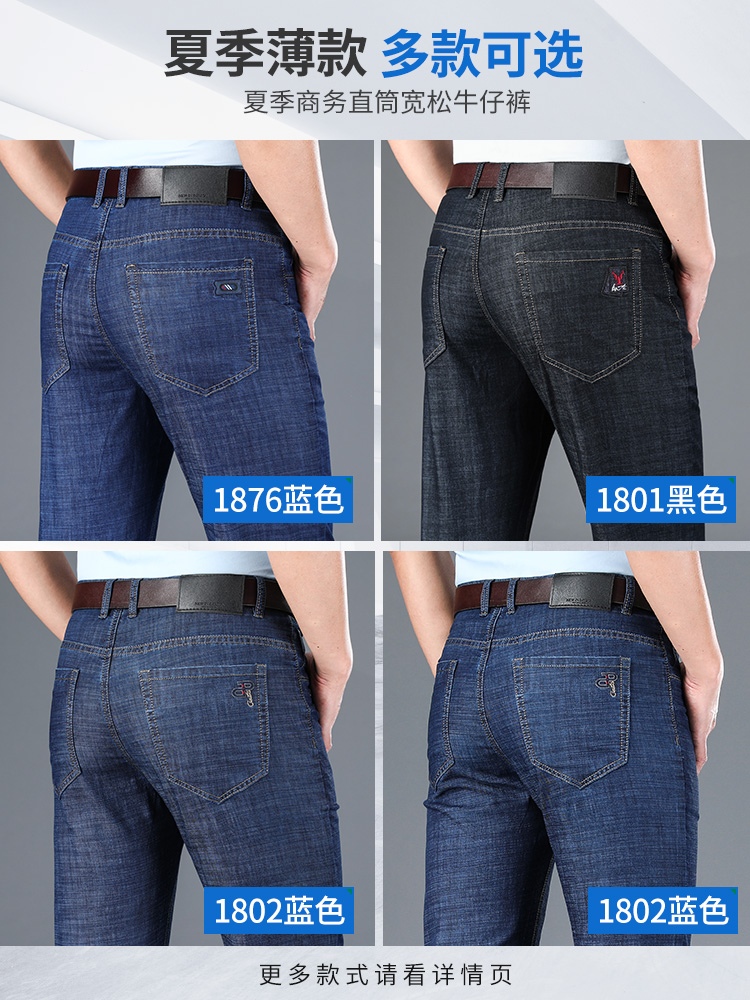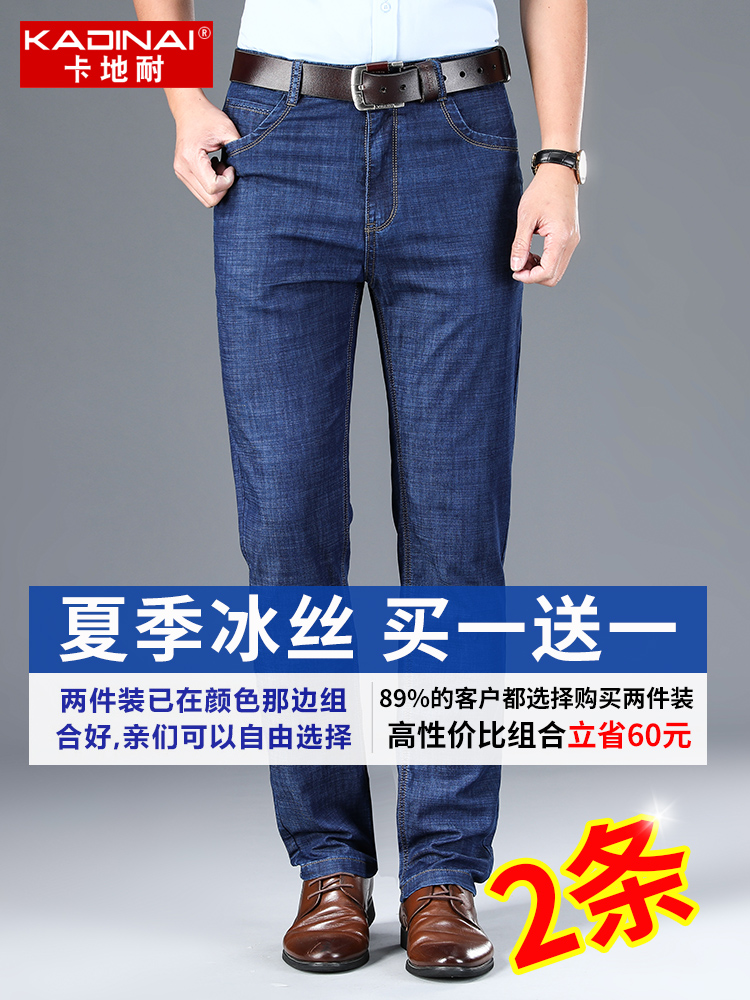 Jeans Men's Summer Slim Loose Straight Barrel Long Pants 2022 New Ice Silk Casual Pants Men's Middle-aged Pants