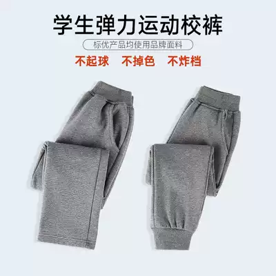 Boys dark gray sports pants plus velvet thickened loose girls loose straight tube closing trousers children's school uniform pants