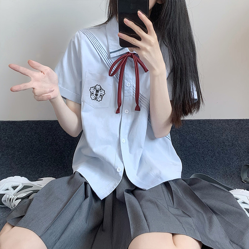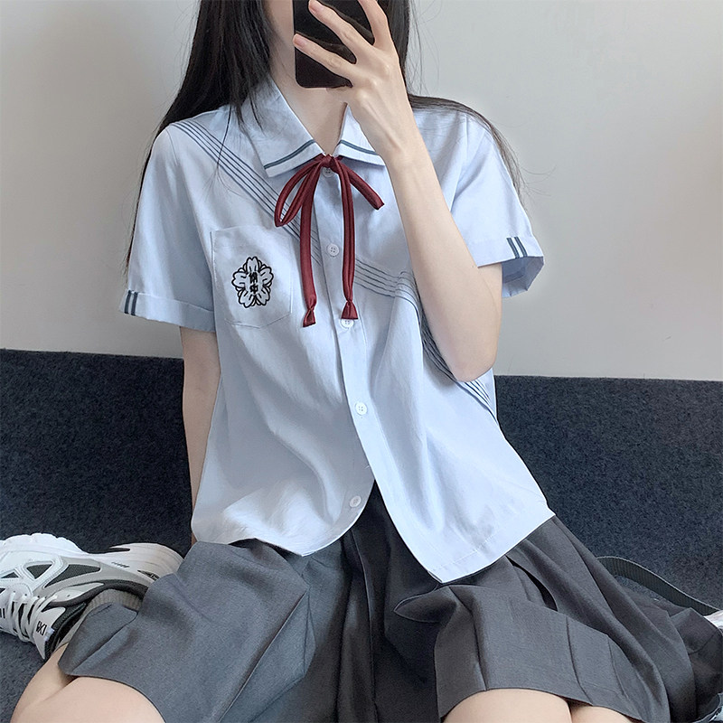 One-foot room original design (sakura attached middle school) summer Korean jk uniform short-sleeved all-match school supply shirt women