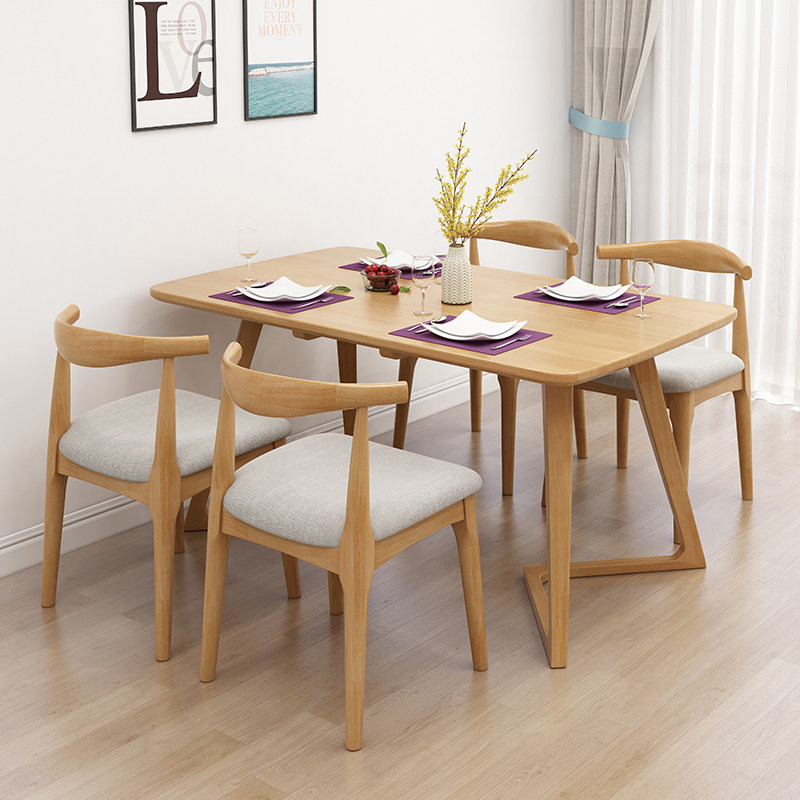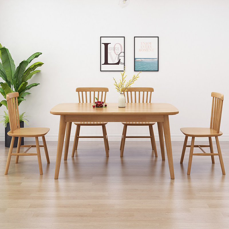 Nordic dining table and chair combination modern minimalist furniture solid wood household small apartment dining table rectangular log Japanese style
