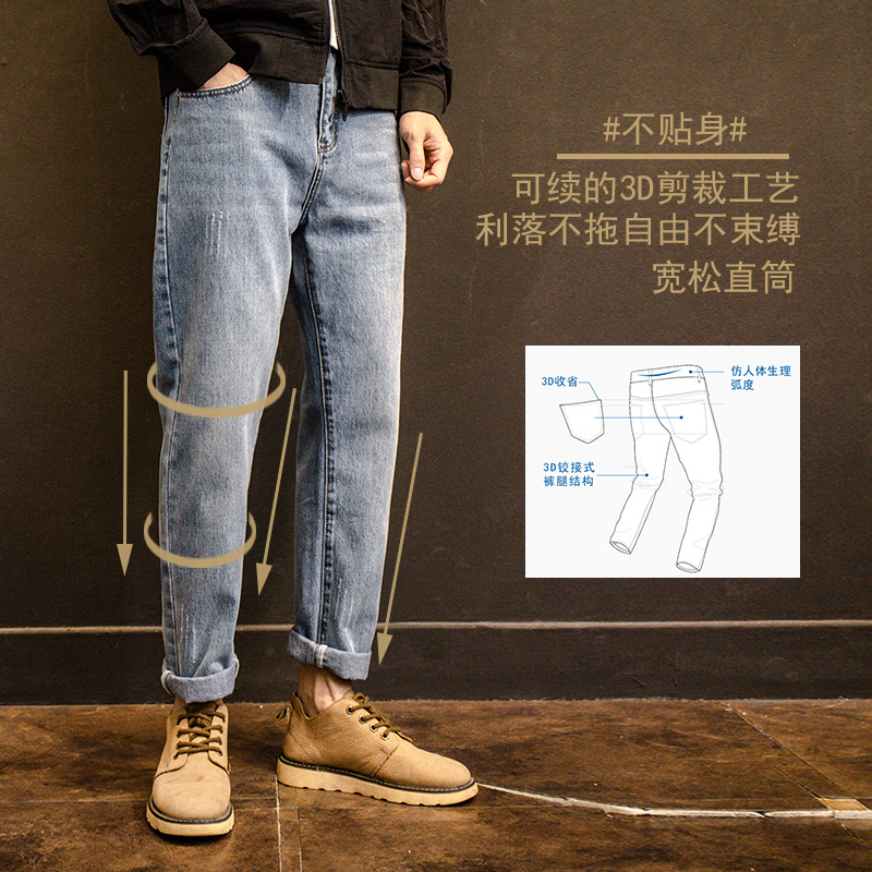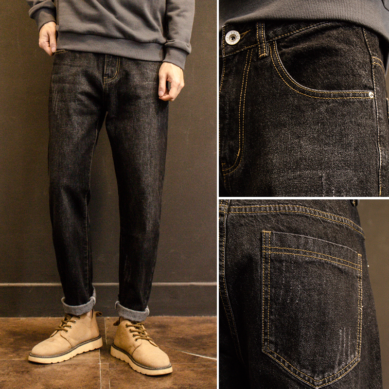Lomon jeans men winter pants 2022 new tide plus thicker straight tube loose men's casual pants