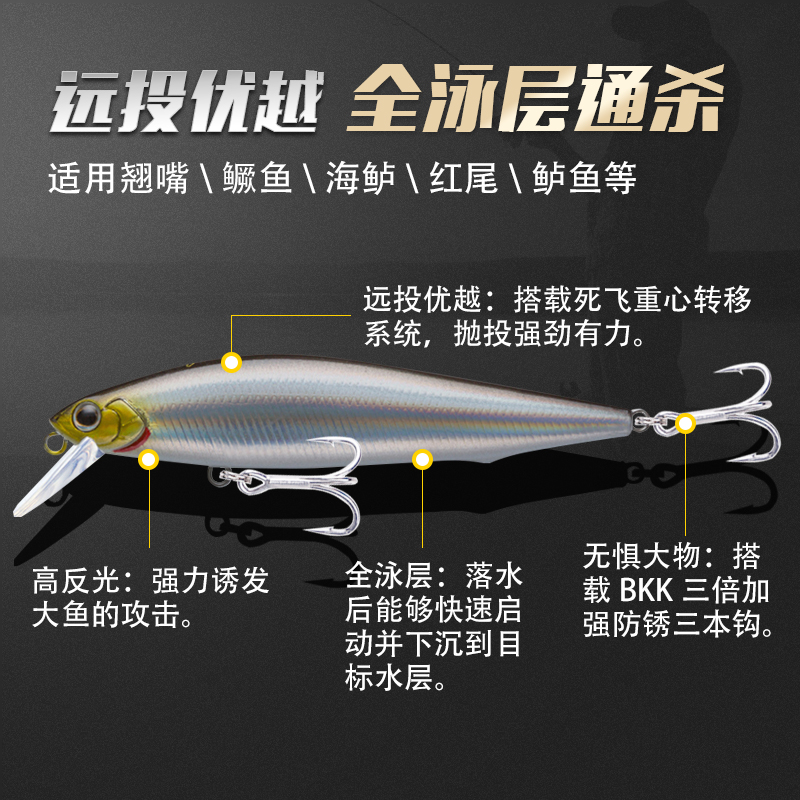 EWE Meixia Silver Knife Sinking Water Mino Dead Flying Long Cast Slowly sinking real scale Luya bait cocked mandarin fish perch false bait