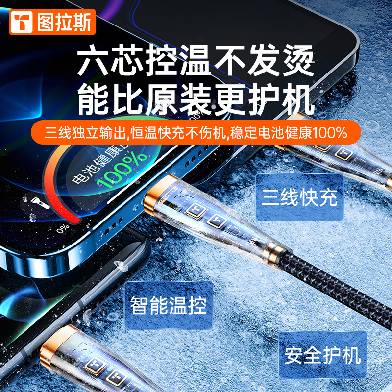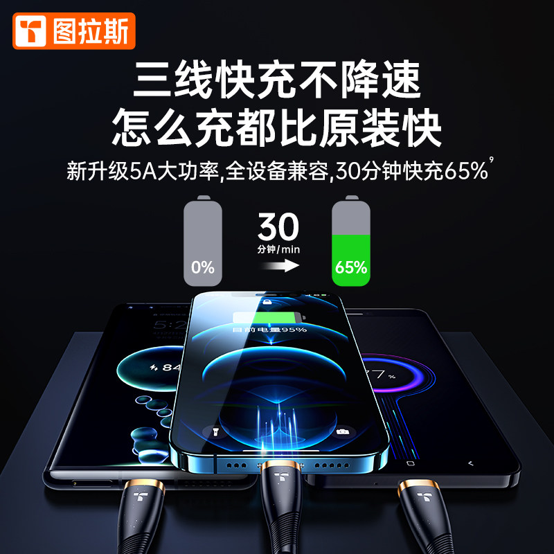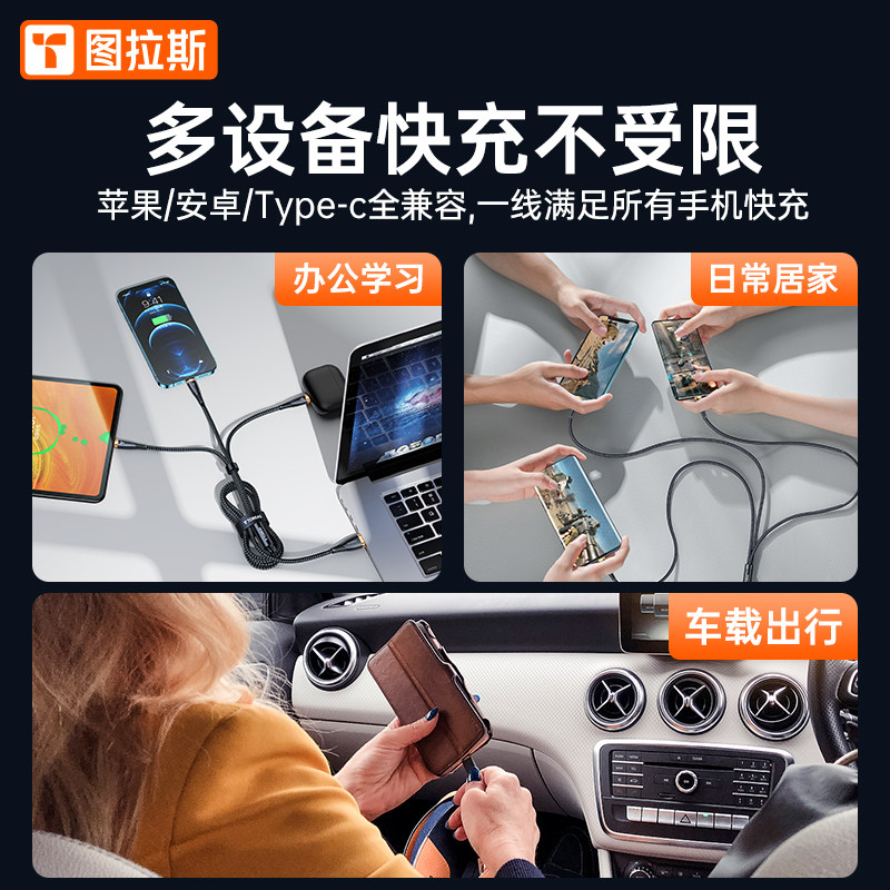 Tula's three-in-one data line quick to charge a three-charge line instrumental phone on-board multifunction USB Applicable iPhone13 Apple 12 Android Huawei TypeC Long two-in-one triple head