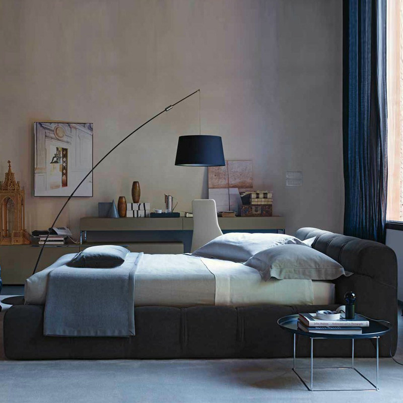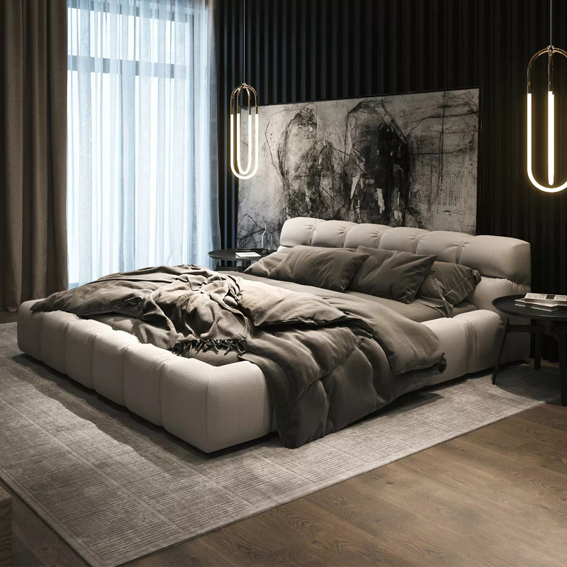 Fabric bed Nordic upholstered double bed Italian light luxury tatami floor-to-ceiling bed fashion simple master bedroom 1 8m wedding bed