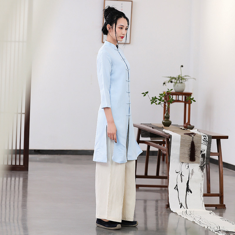 Tang suit Chinese-style improved plate buckle Chinese style cotton and linen women's retro layman's suit Buddha-style paired top tea suit 104