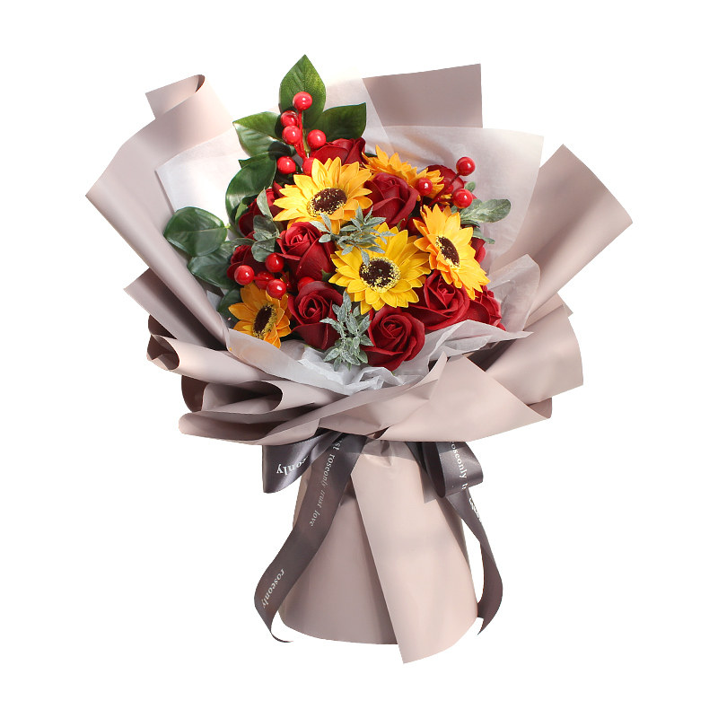 Sunflower bouquet simulation graduation photo holding flowers birthday girl fake flower soap Mother's Day gift for mother