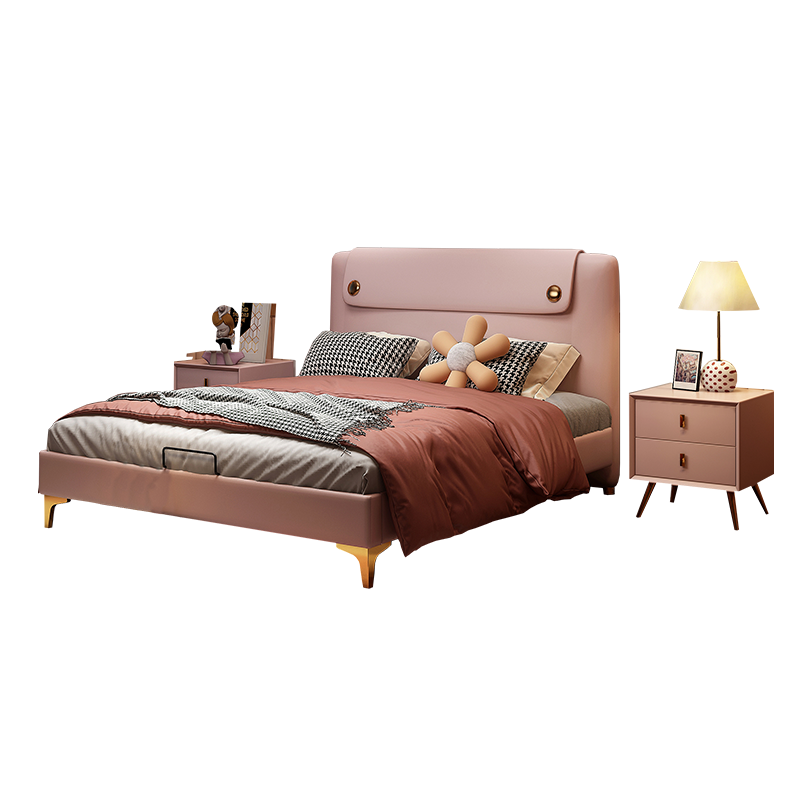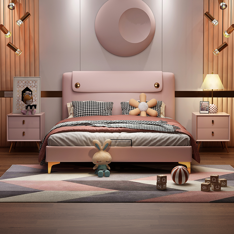 Light luxury children's bed ins net red soft bed Nordic 1 2 simple modern leather bed 1 5 meters girl pink princess