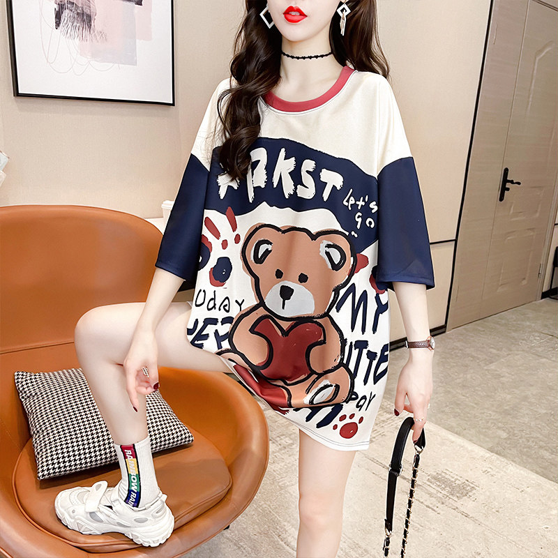 Summer dress new large size 200 catty short sleeve T-shirt female upper clothes lenient and small bear gestation to go out in the late stage