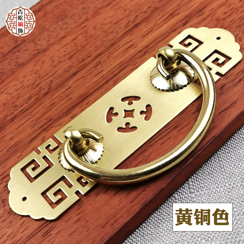 New Chinese imitation antique pure copper handle bookcase wardrobe drawers crossstyle handle Ming-style retro furniture copper accessories pull rings