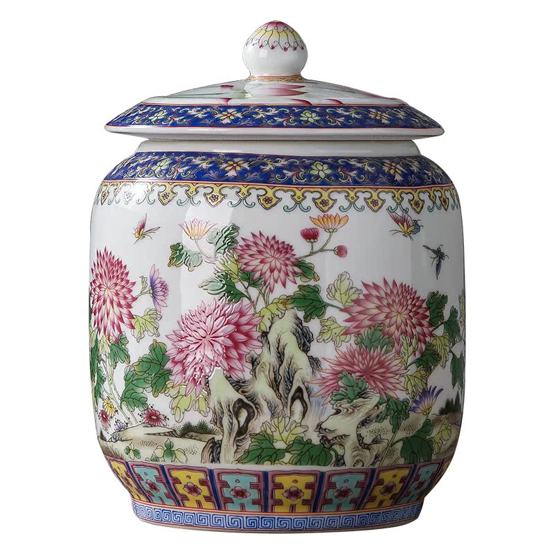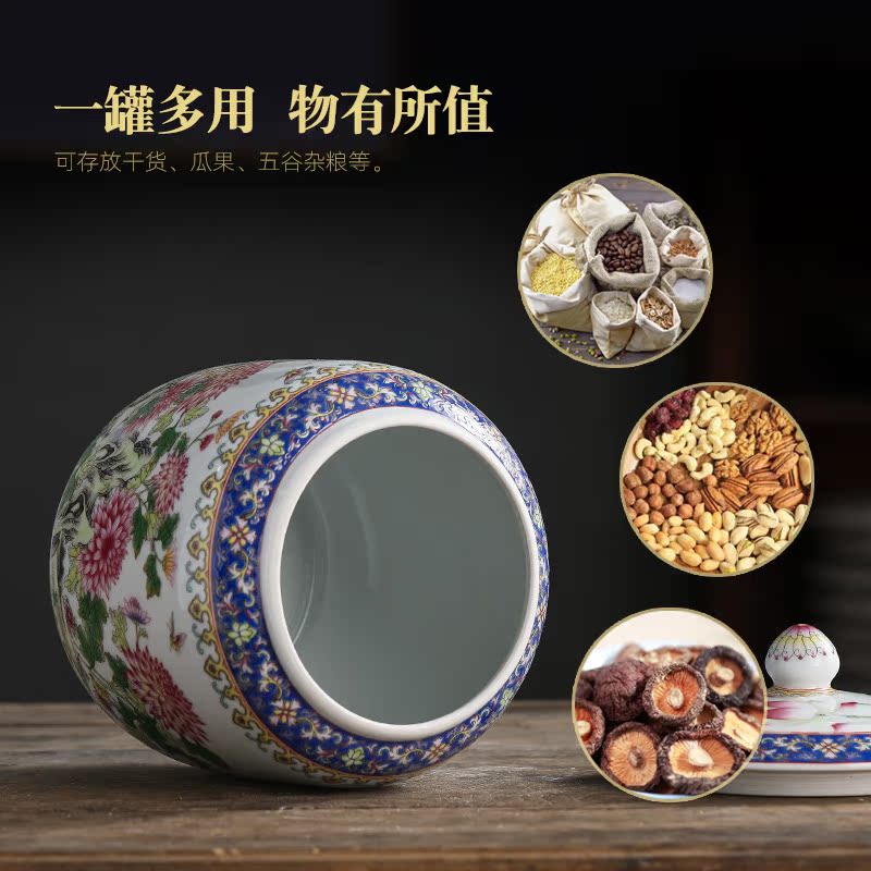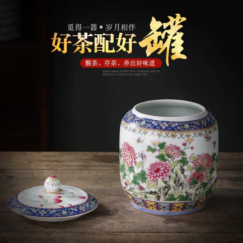 Jingdezhen Tea Leaf Jar Ceramic Half Jin Large Seal Pot Green Tea Black Tea Storage Tank Empty Pot Pu'er Jar Loose Tea Jar