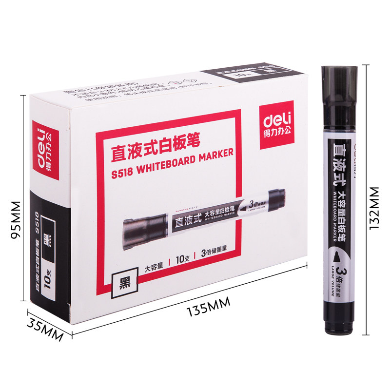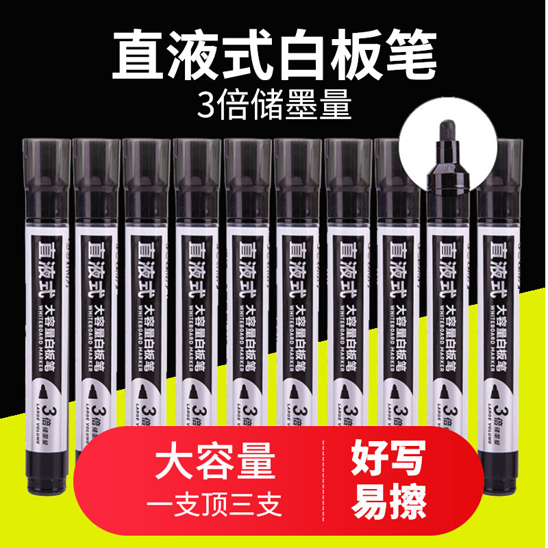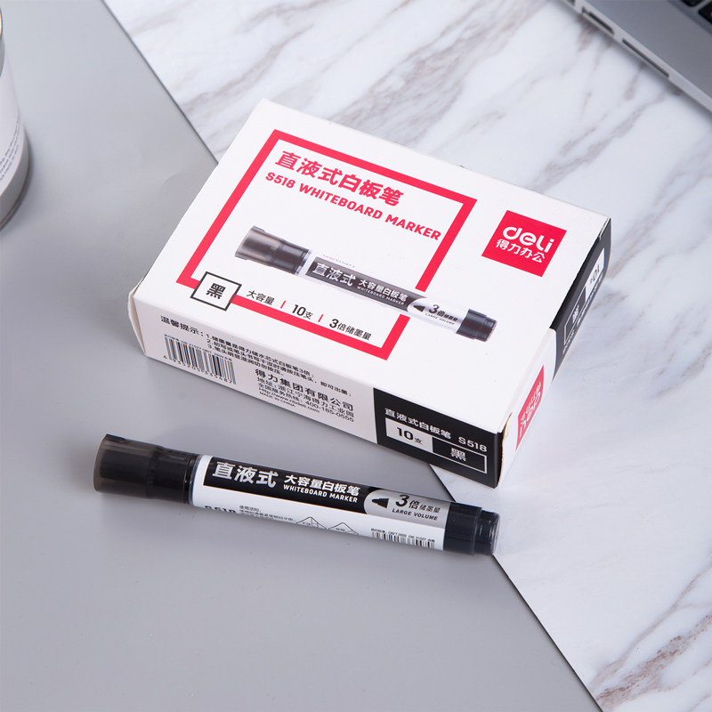 Powerful whiteboard pen can wipe children's non-toxic blackboard water-based pen easy to wipe S518 large-capacity straight liquid blue red writing whiteboard water-based pen display board teaching pen office stationery black