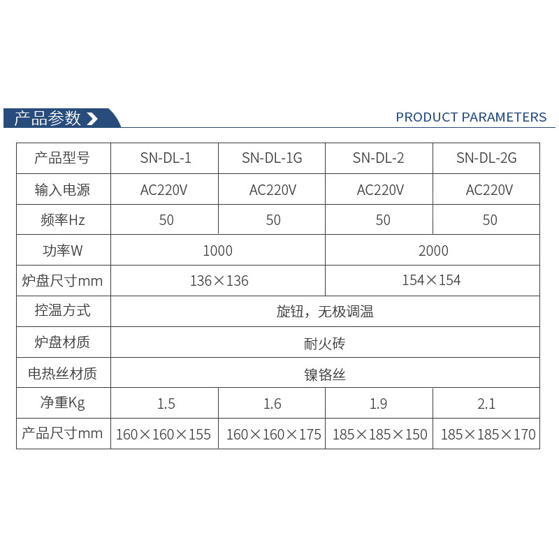 SN-DL-1 single joint 1KW (without stove cover) SN-DL-1G single joint 1KW (with furnace cover) SN-DL-2 single joint 2KW (without belt)
