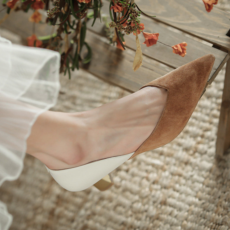 Givenivan uses contrasting colors to ingeniously attract attention~Black high-heeled 5 5cm female pointed toe with temperament and thick heel