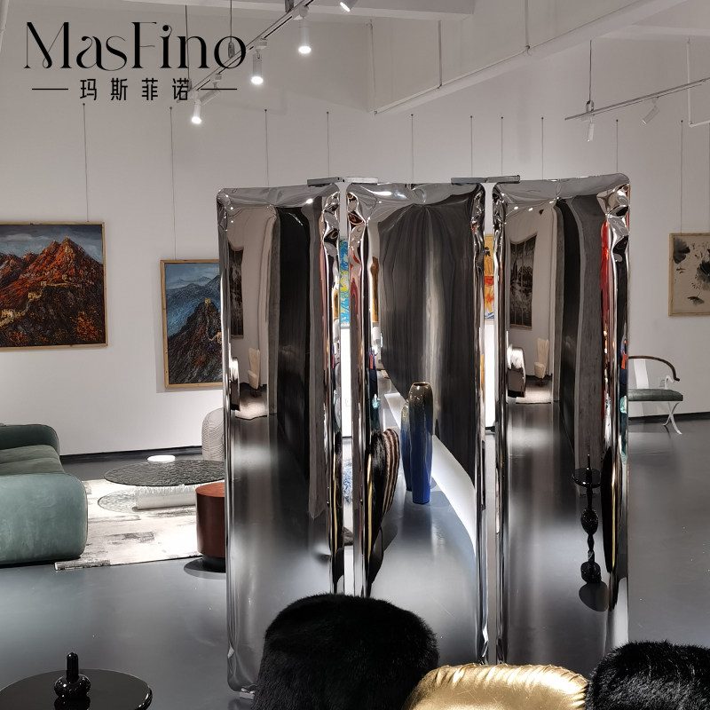 Masfino Furniture Stainless Steel Dressing Mirror Creative Screen Decoration for Light Luxury High-end Website Red