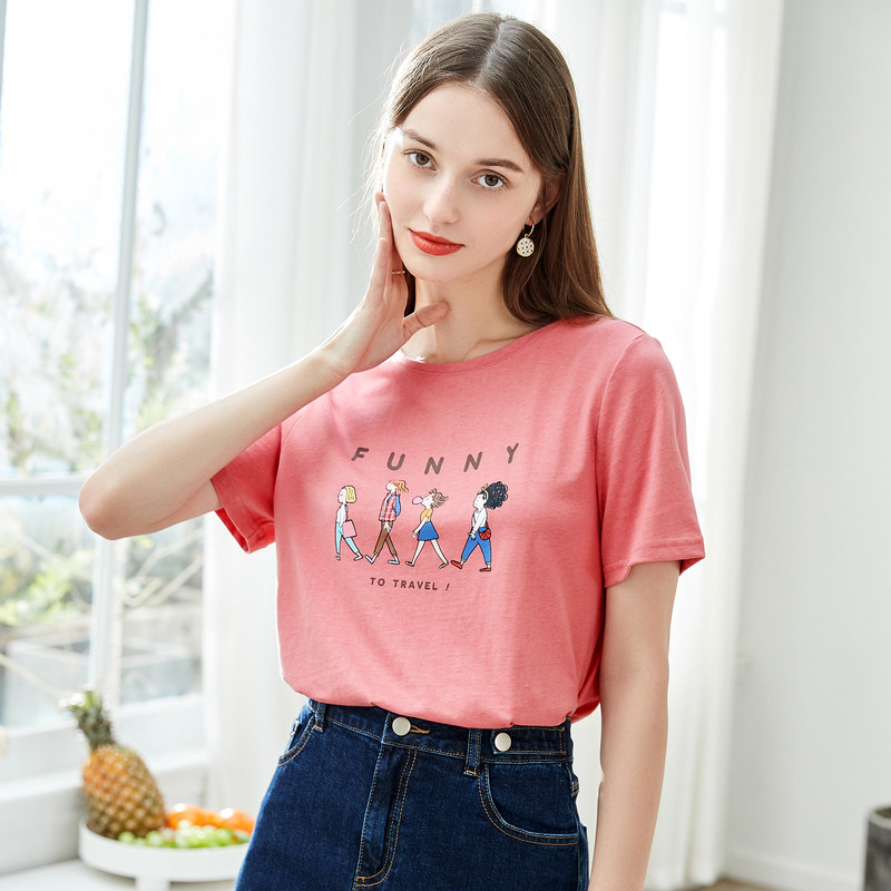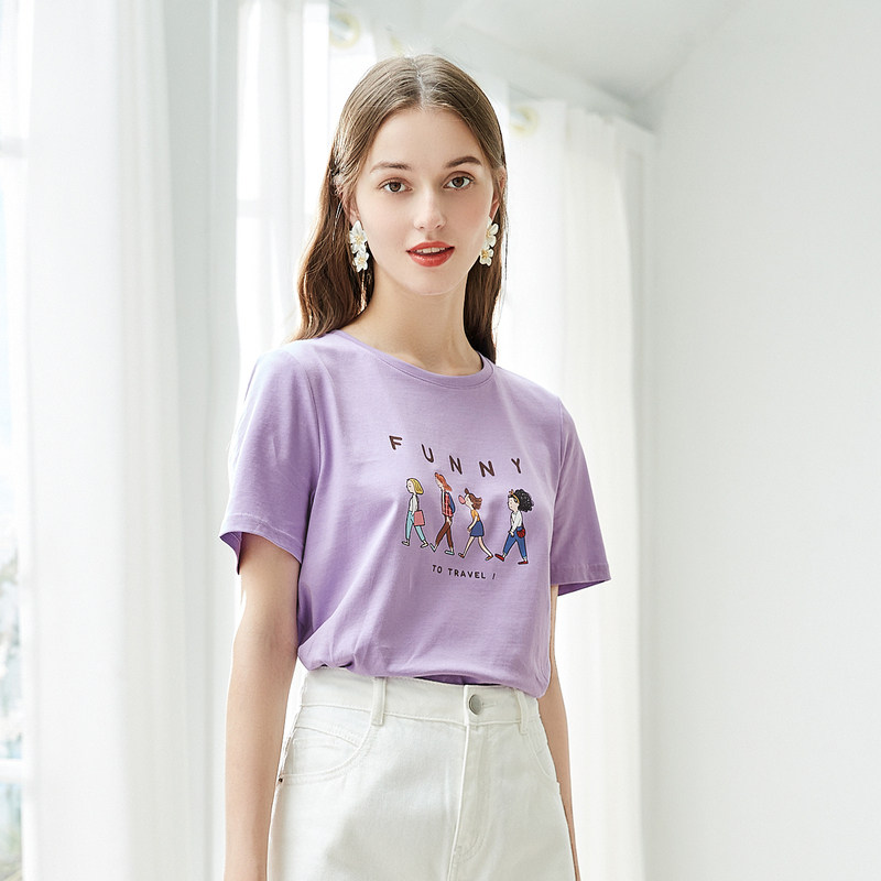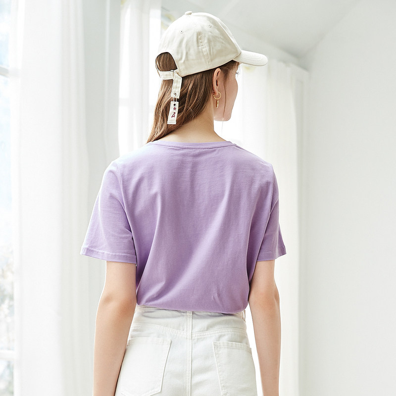 Beu 100 Gram Pure Cotton Short Sleeve T-shirt Woman Tide Ins Pure Color Printed Round Collar Blouse 2022 Summer New t-shirt