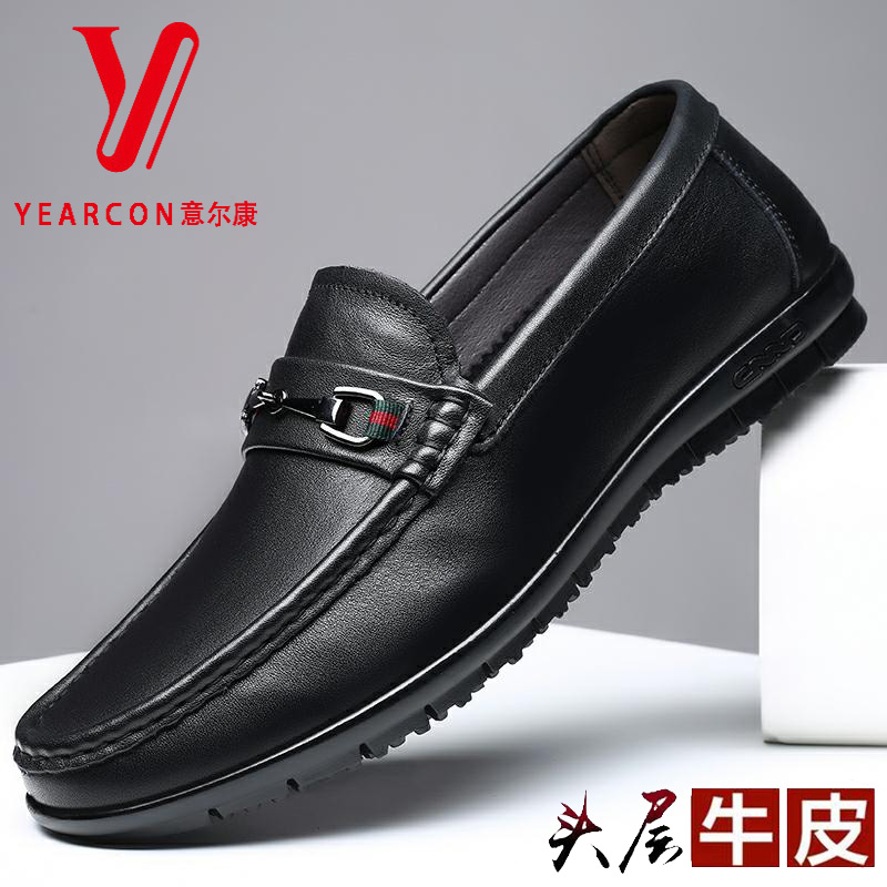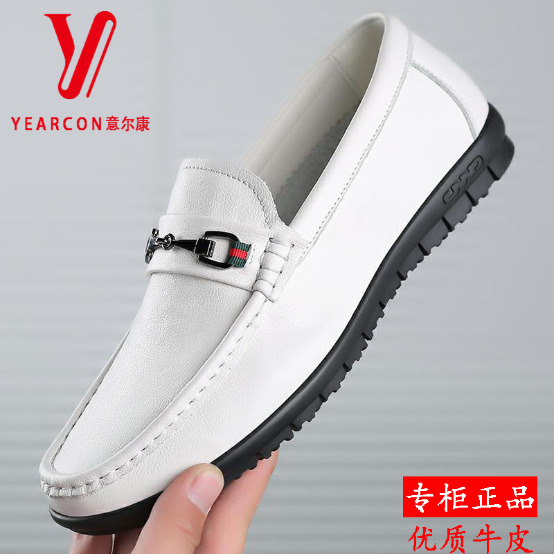 Yercon Men's Shoes Genuine Leather Bean Shoes Summer Trend Little White Shoes Casual Soft Base Anti-Slip Breathable Fashion Leather Shoes Man