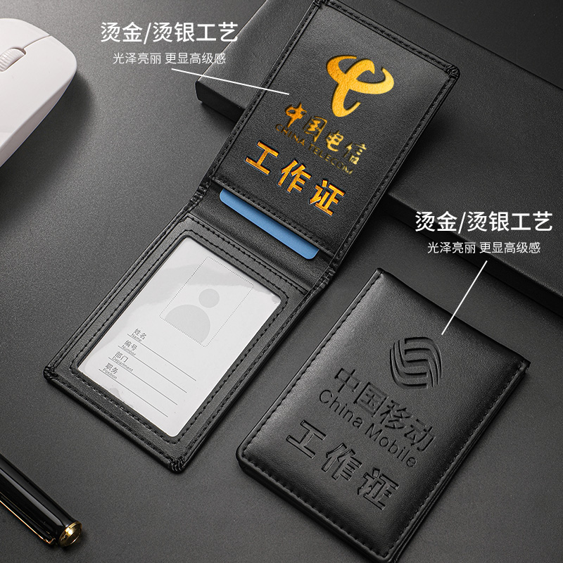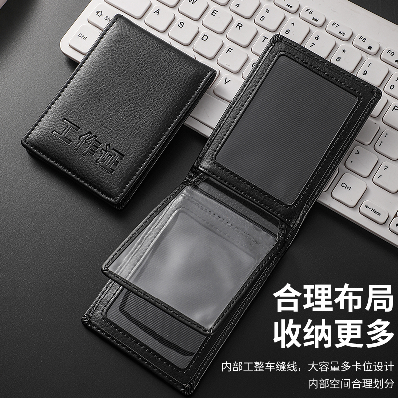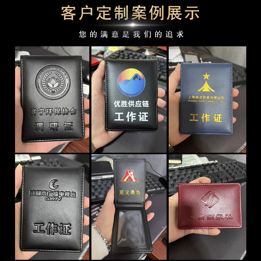 Real leather work certificate leather sleeve custom work certificate cutting sleeve unit official staff chest card hanging card certificate sleeve protective sleeve-Taobao